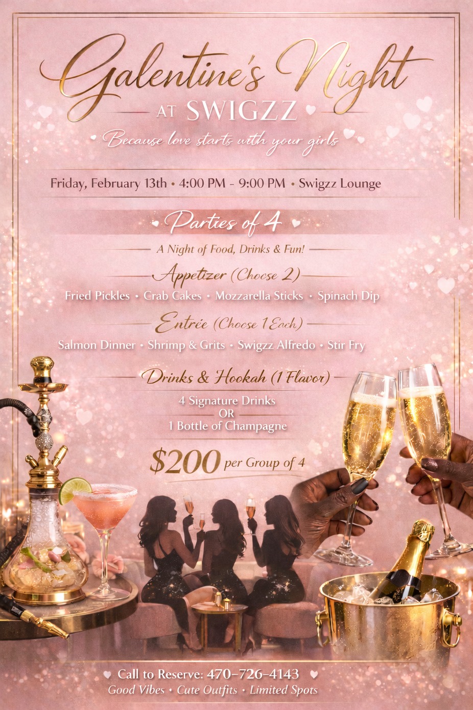 Grab your girls and come celebrate Galentine's at Swigzz.